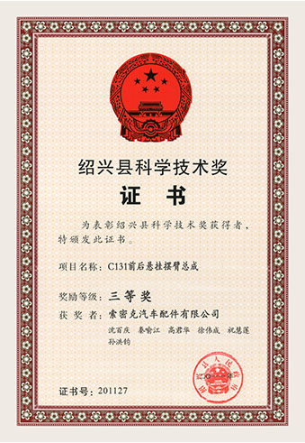 公司已先后通過IATF16949質量管理體系認證、ISO/14001環境管理體系認證和OHSAS18001職業健康安全管理體系認證。是“國家高新技術企業”“行業龍頭企業”和“全國百家優秀汽車零部件供應商”。